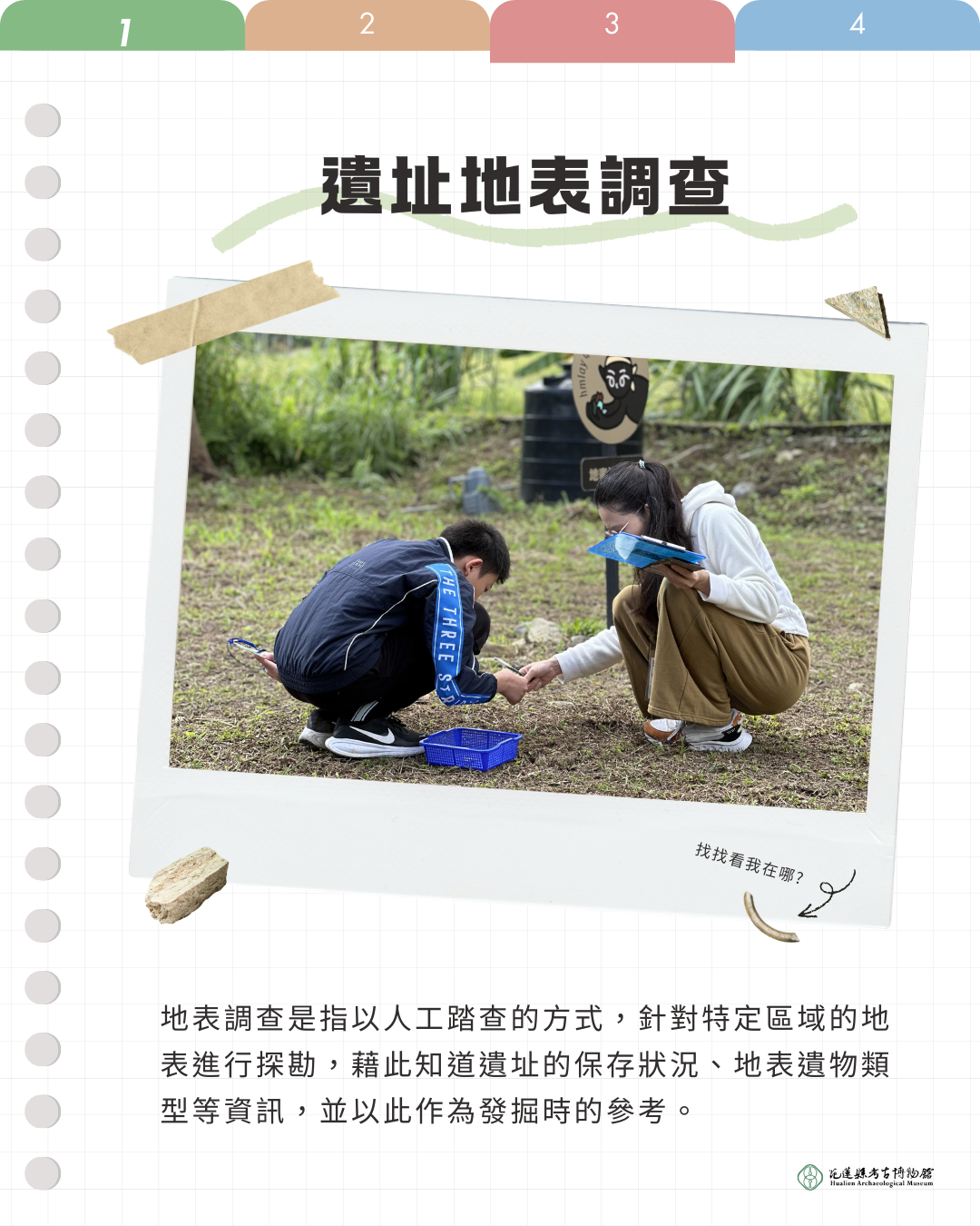 (一) 每場次為半日行程(約3-4小時),預約項目包含在地部落走讀、現地考古發掘、遺址地表調查、出土標本清洗 。