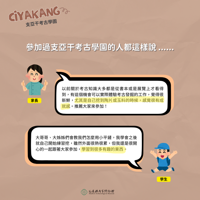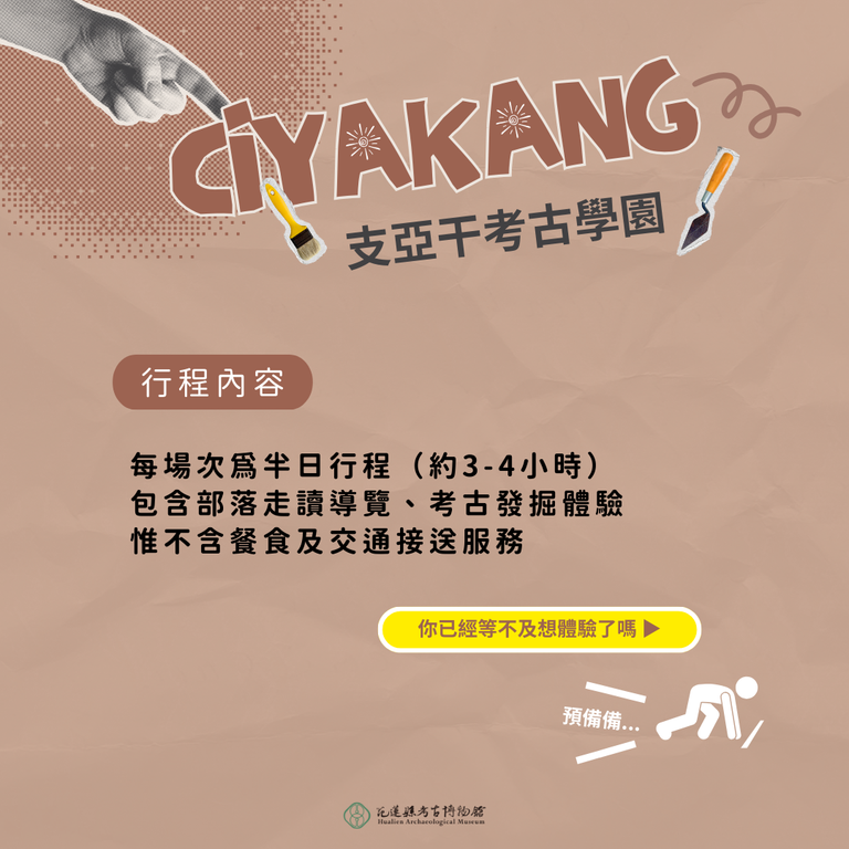 (四)行程內容:每場次為半日行程,包含部落走讀導覽及考古發掘體驗,惟不含餐食及交通接送服務。
